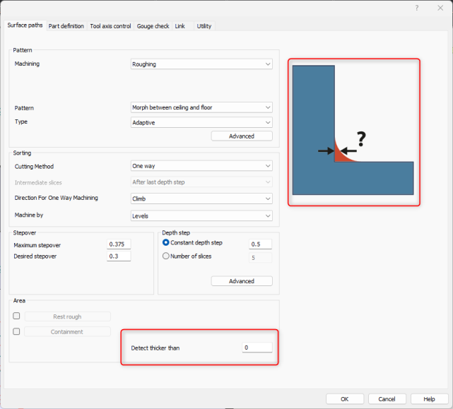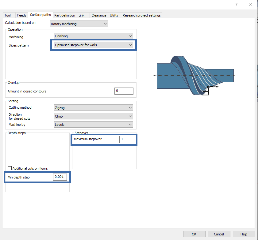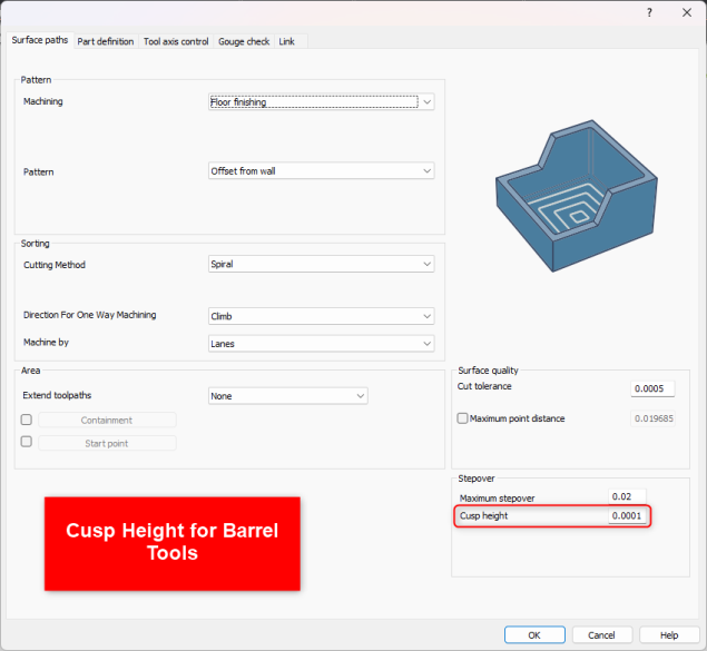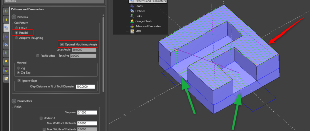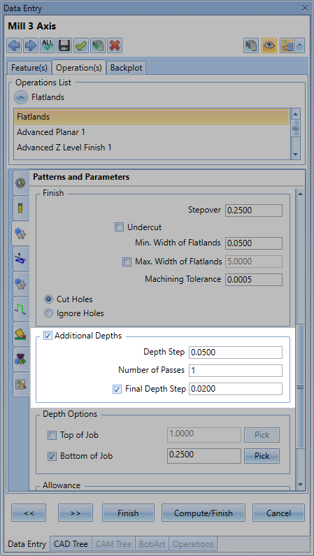 Patterns and Parameters - Setup all the main parameters of the Operation such as defining: Cut Pattern/Direction; Depth of Cut and Stepover; Allowance; Top/Bottom of Job