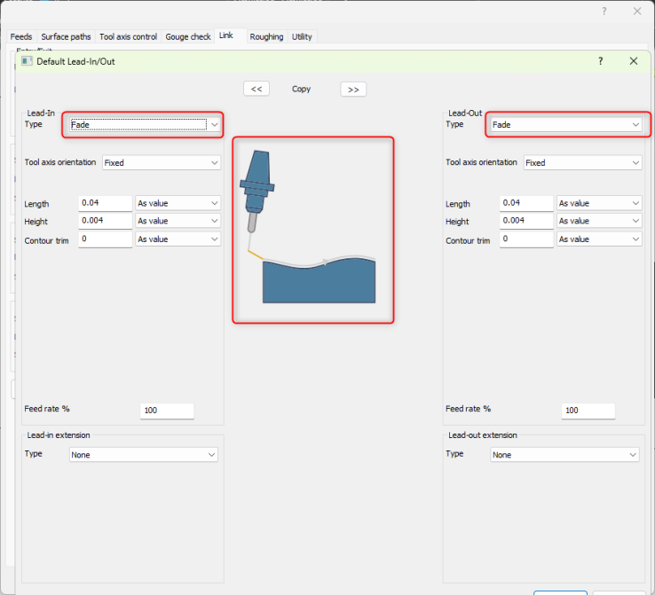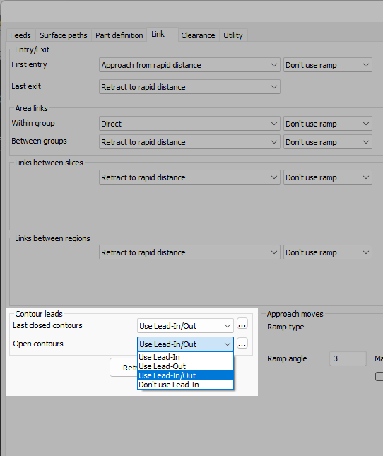 Leads - Setup the Entry/Exit type as well as the Lead-in/out for the Operation