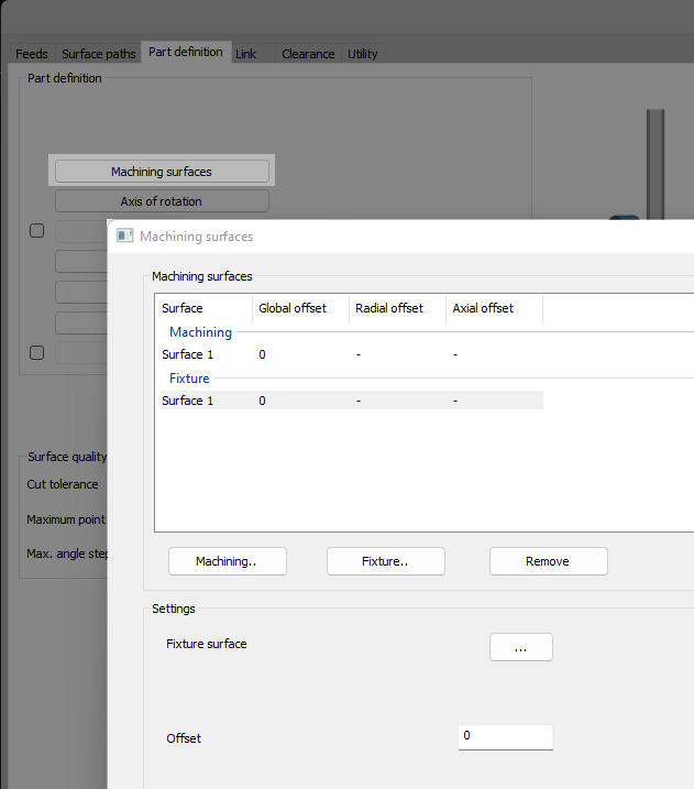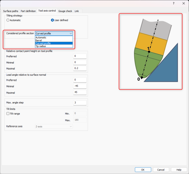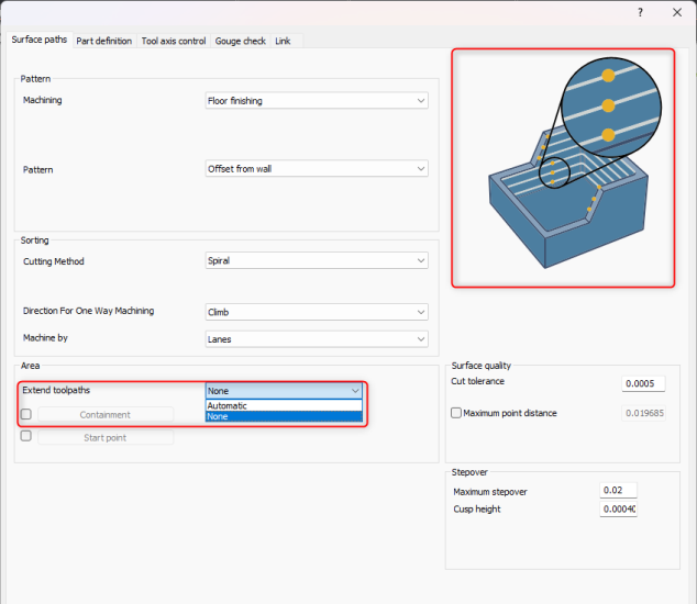 Options - Setup parameters like: Cutting Extents and tool point of calculation