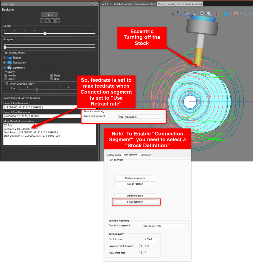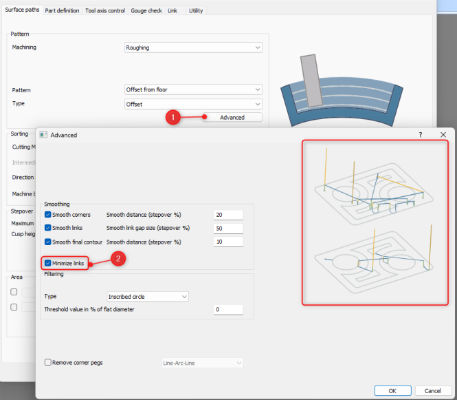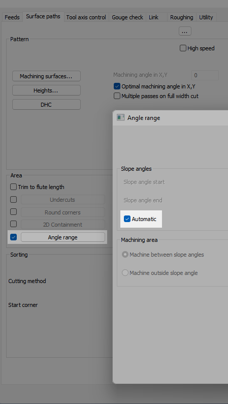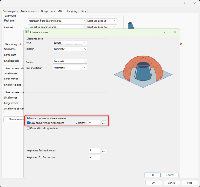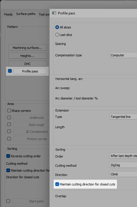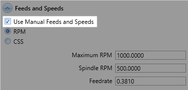 Advanced Feedrates - Gives more control over the feedrates and provides options such as: Convert Rapids to Feeds; Lead-in/out feedrate percentage; Corner Slowdown; Adaptive (Volume Based) or Radial Chip Thinning Feedrates