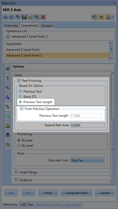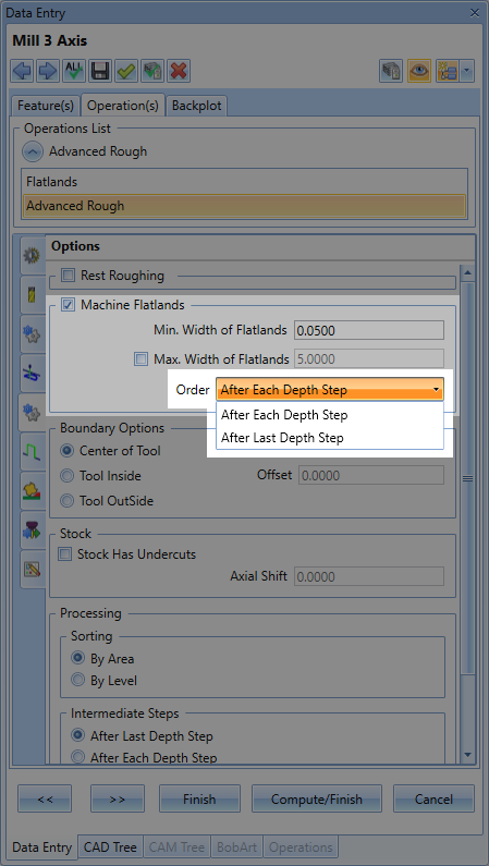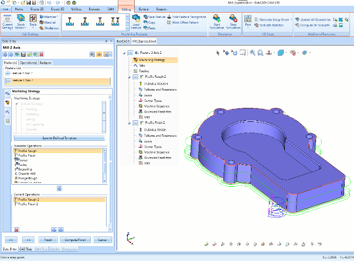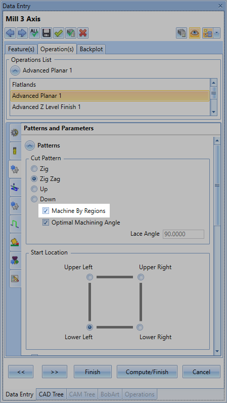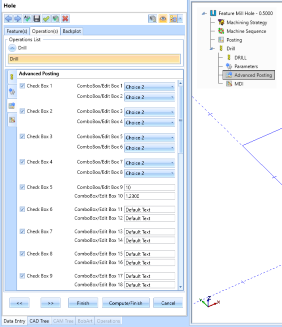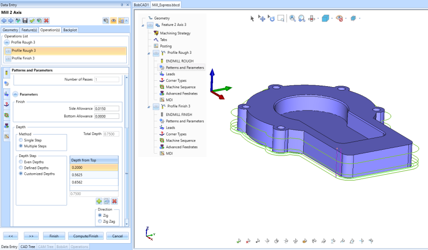 Compute/Finish - Close the CAM Wizard and compute all toolpath. The Feature will be created in the CAM Tree with all Operations getting computed