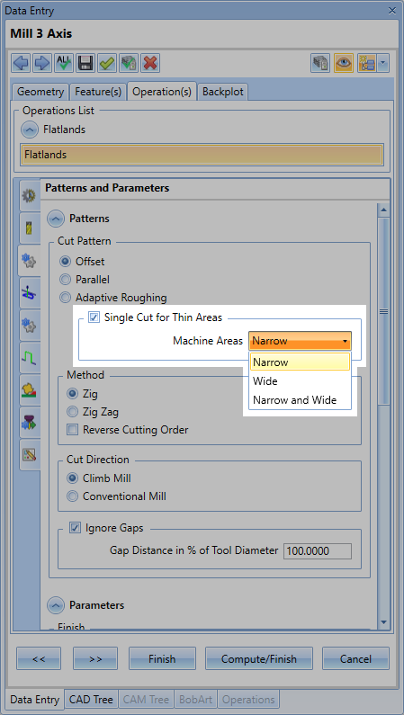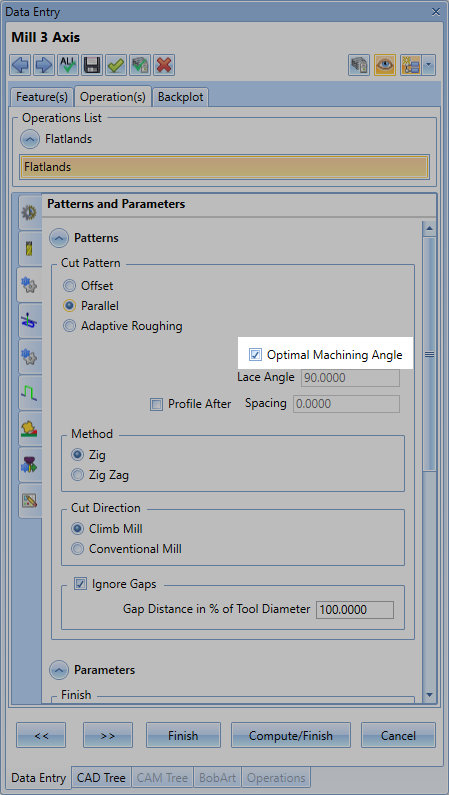 No need to worry about the visual change of the UI for existing customers. The workflow remains the exact same as the previous CAM Wizard. You will have the same tabs to go through and the same"Previous", "Next", "Finish", "Compute/Finish" and "Cancel" buttons at the bottom to click through the whole wizard.