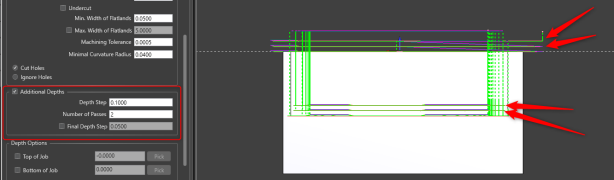 In Mill 2-Axis, you now have full control over your cut depths with the brand-new "Customized Depths" option. Rather than sticking to uniform depths, you can manually define each step exactly how you want it — perfect for using larger depths at the top of the profile and smaller depths at the bottom for precision control.