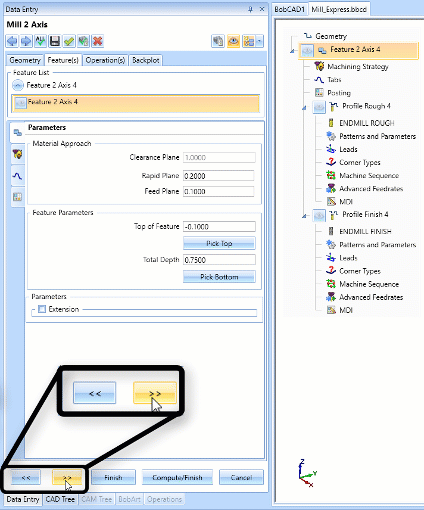 Compute/Finish - Finish and Compute the toolpath for the feature. This closes the wizard.