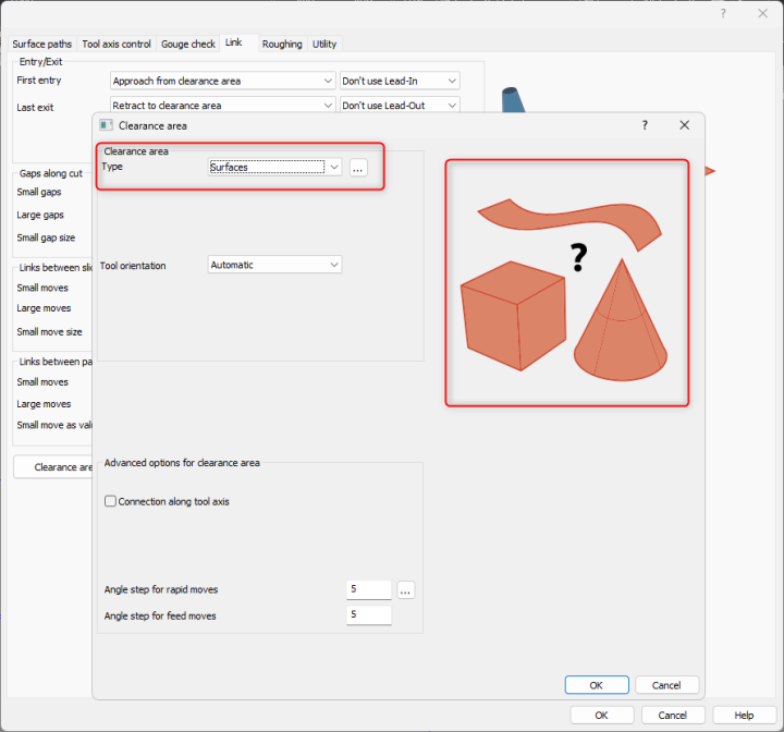 Parameters - Setup general parameters for the Operation like: Clearance, Rapid, Feed Plane; Top of Feature, Total Depth; Extensions