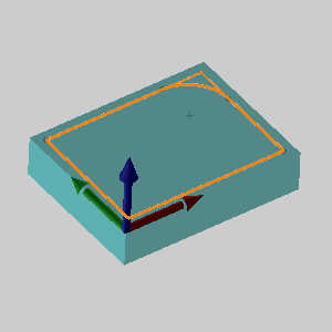 The V-Carve feature type is generally used to engrave text, arcs, lines and splines in a 3-dimensional form with 3-axis tool motion, with pocketing of open spaces in the selected profiles if necessary. There are two V-Carve operation types, Tapered Pocketing and V-Carve Finishing (engraving). This example uses the both operations, one to perform the pocketing with an endmill, and the second to cut a tapered wall around the pocket.