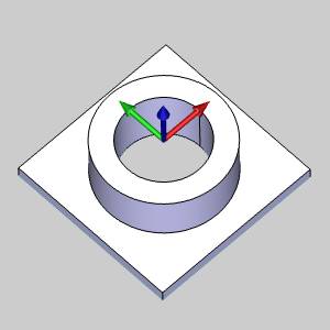 The part geometry for this example is shown next. Stock has been created using the Solid Model option, and the machining origin is placed at the top and center of the stock. Because we are making a 2-inch ID thread, the hole diameter of the part is 1.8125 inches.