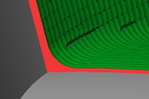 Minimal Curvature Radius - determines the smallest radius used in the toolpath motion. This value must be greater than zero, but be aware that if you set this value too high, no toolpath is created. This parameter is useful, for example, to determine how far into a corner the toolpath can reach.