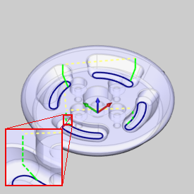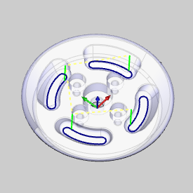 The toolpath shows that the entry into each pocket is normal to the surface, which in this case, is parallel to the Z-axis.