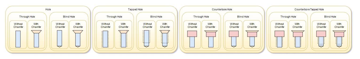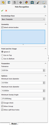 We have taken Hole Feature Recognition to a whole new level in this release. Now, with a single click we recognize all four hole types, and their variations!