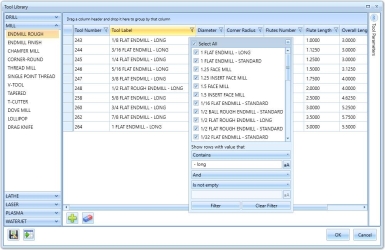 The new tool library also provides the means to group tools, and filter tools to make searching large libraries easier than ever before!