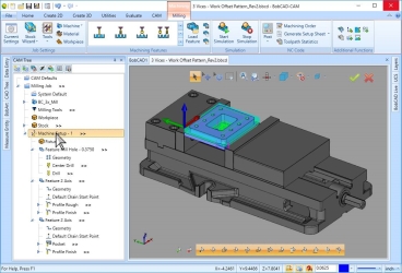 BobCAM now allows you to output copies of entire machine setups and allows you to specify different work offsets for each copy. While Toolpath Patterns have been offered in the past, and could be applied to Machine Setups, there was no way to output the same code with different work offsets. This could be a little frustrating when machining the same job on multiple locations on the table, because it meant you'd need to manually copy and paste the output, then adjust the work offset number of each copy by hand. Now, it's easy to create a Work Offset Pattern, set the work offset numbers to use, and set the machining order. You can also set a pattern type with distances to view the toolpath copies in the graphics area, and control whether the stock, fixtures, and workpiece are patterned in simulation. The Work Offset Pattern even gives you the ability to control in what order the code is output. Choose between By Tool Per Work Offset, By Tool, or By Work Offset.