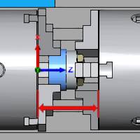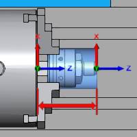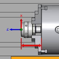 This defines the distance between the virtual machine zero and the front face of the sub spindle. You use this value to determine the location to which sub spindle moves when transferring the part. (This value is only used for simulation purposes.)